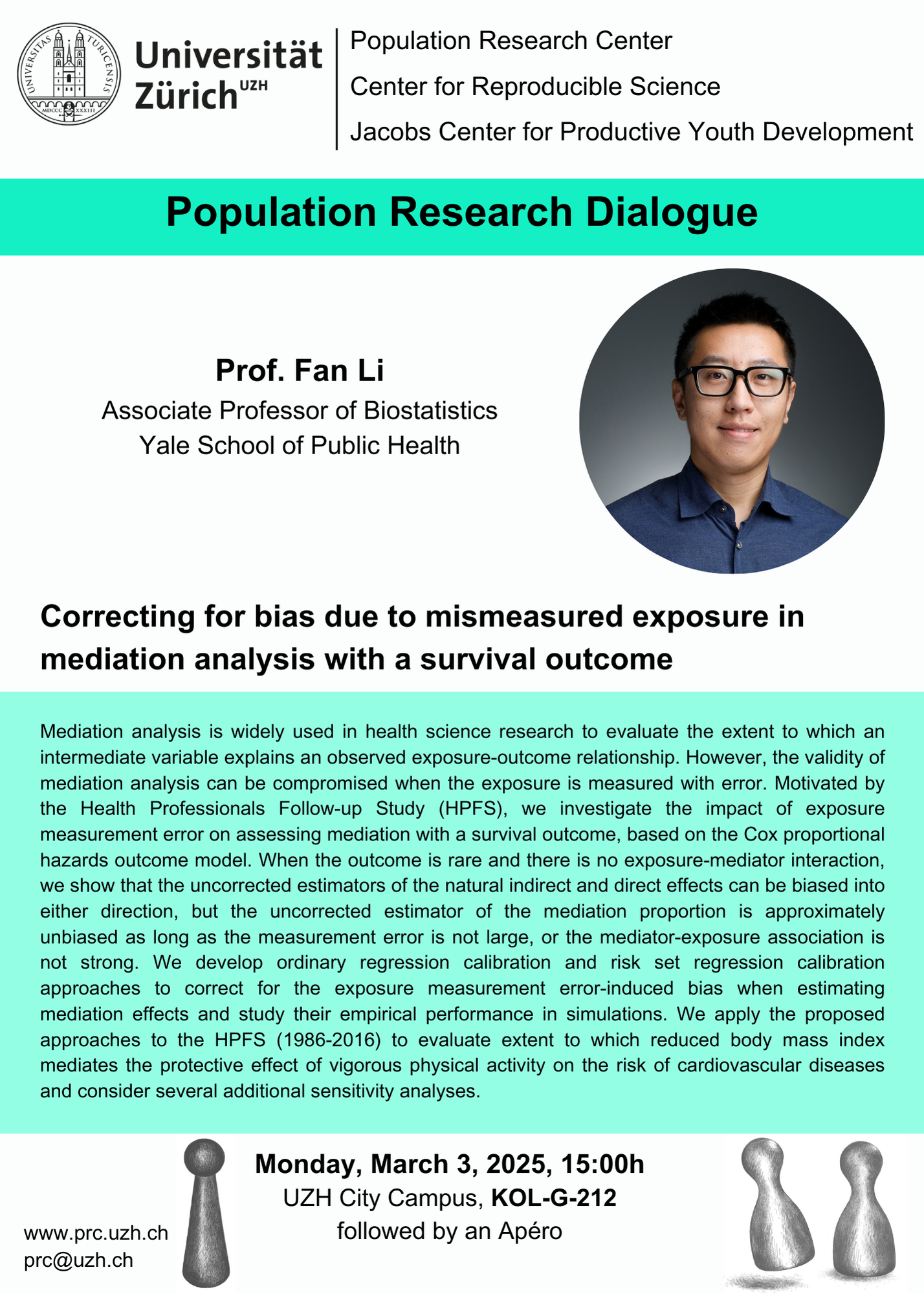 3.3.2025: Fan Li - Correcting for bias due to mismeasured exposure in mediation analysis with a survival outcome
